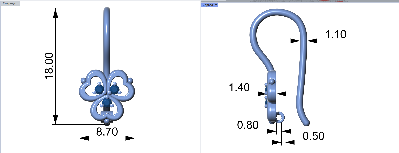 3. Будь ласка, вкажіть: бажаний розмір і вагу виробу, метал, у якому планується відливка, розміри каменів, якщо вони присутні в моделі.