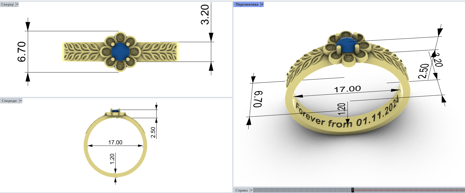 3. Будь ласка, вкажіть: бажаний розмір і вагу виробу, метал, у якому планується відливка, розміри каменів, якщо вони присутні в моделі.