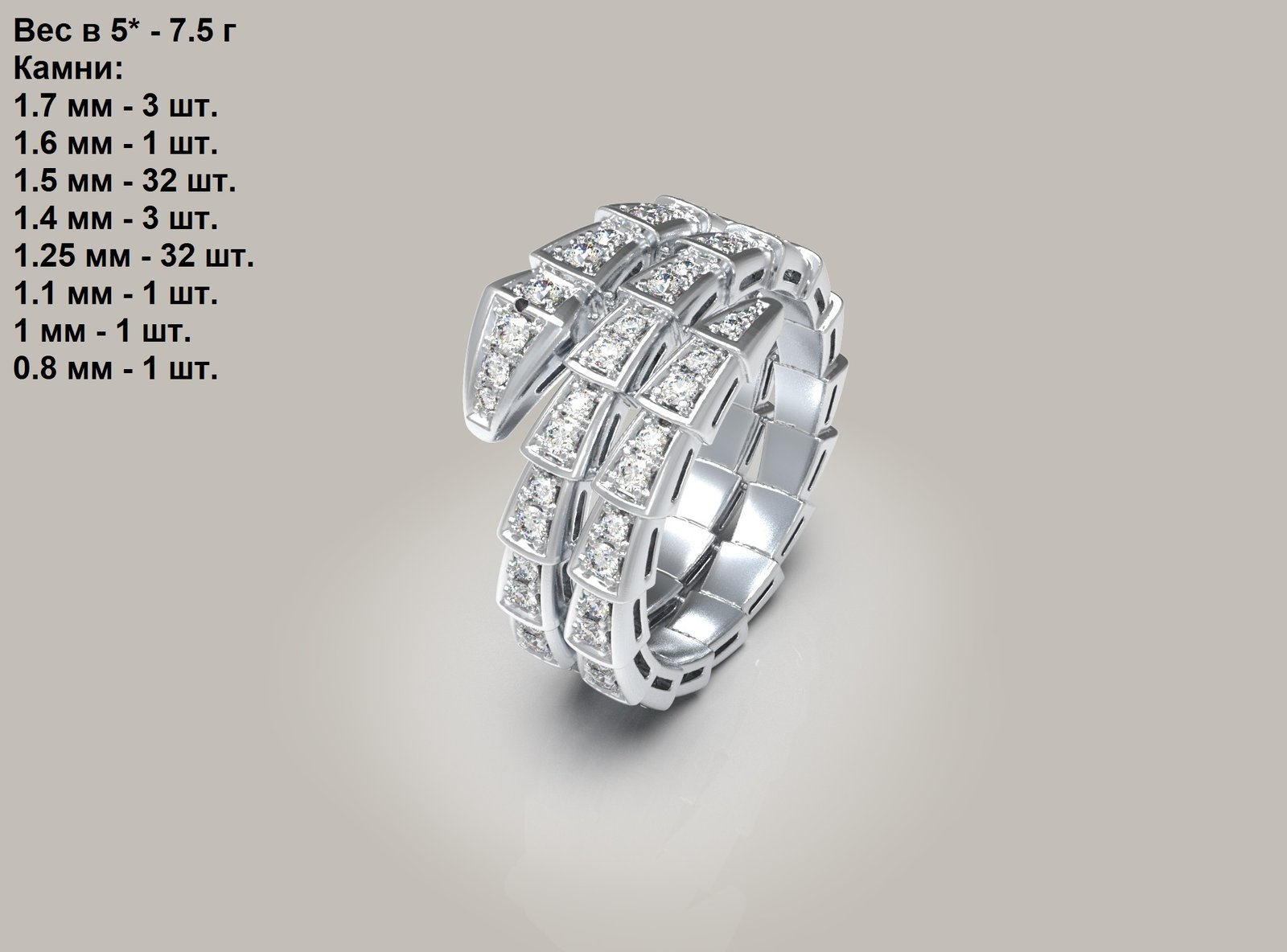 3. Будь ласка, вкажіть: бажаний розмір і вагу виробу, метал, у якому планується відливка, розміри каменів, якщо вони присутні в моделі.